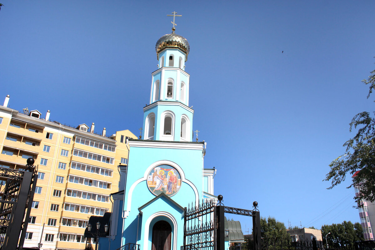 Глава Абакана Алексей Лемин и архиепископ Абаканский и Хакасский Ионафан ознакомились с ходом строительства Благовещенского храма по ул. Стофато в Юго-Западном жилом районе. Строительство храма близится к завершению, планируется, что в 2022 году он откроется для прихожан. Крыльцо главного входа облицовано гранитом, по обеим сторонам гранитной лестницы установлены опоры декоративного освещения, как и по периметру прилегающей территории, осталось смонтировать фоновую подсветку храма. После того, как будет уложен грунт на газонах, включат освещение и светильники фоновой подсветки. В течение лета построено здание будущей церковной лавки, здесь монтируется кровля, установлен бордюрный камень для асфальтирования дорожек. Осмотр строящегося храма Алексей Лемин и Владыка Ионафан начали со второго этажа здания. Здесь довольно просторные площади, и будет удобно разместить, к примеру, библиотеку. Следующий этап — внутреннее убранство храма, просторный зал на первом этаже, где и будут проходить бо
