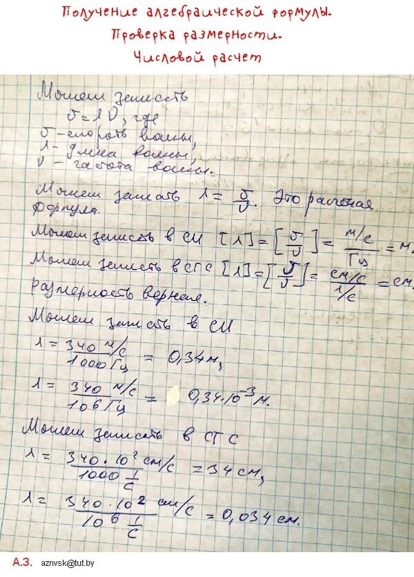 Проверяем выполнение правила размерности в окончательной алгебраической формуле. Числовой ответ получаем в системе СИ и СГС.
