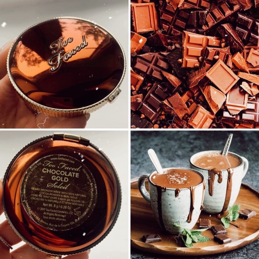 Здравствуйте, дорогие читатели! Рада видеть вас на своём канале!🦋 Одновременно быть рьяным сладкоежкой и истинным бьютиголиком - да плёвое дело! Чего только стоит момент, когда наносишь на себя косметическое средство и попадаешь в ароматное облако наслаждения любимым ароматом шоколадки! К тому же всем нам известно, какими мягкими и гладкими делает масло какао кожу и волосы. 😏 У меня накопилось достаточно средств с этим умопомрачительным ароматом, поэтому я спешу поделиться ими с вами, если вы такой же любитель шоколада, как и я. 🍫 Бронзирующая пудра Too Faced Chocolate Gold Soleil Bronzer Прежде всего хочу поделиться своим самым любимым средством, которое я использую в макияже практически каждый раз (это прослеживается даже в моих видео на канале с макияжами). Узнала я об этой пудре в видео на ютубе у одной блогерки и мгновенно заказала её даже без тестирования, хоть я и бледнокожая, а цвет довольно теплый. И не ошиблась! Именно благодаря этой бронзирующей пудре я превращаюсь из б