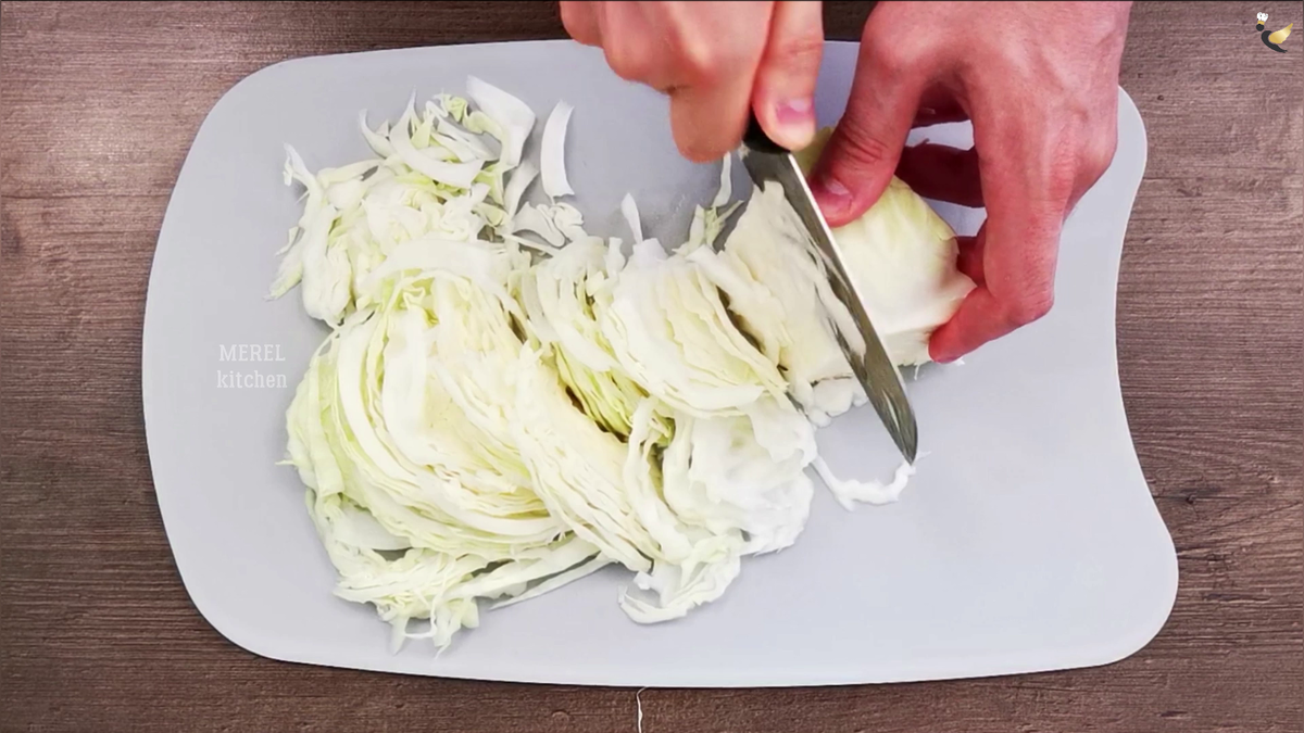 Любой овощной салат это не только очень вкусно, это еще очень полезно. Я люблю овощные салаты, особенно мне нравятся салаты из печеных овощей, они прекрасно подходят к любым гарнирам и очень хорошо сочетаются с любым мясом. Однако иногда хочется чего-нибудь простого, легкого, чтобы быстро нарезал, заправил, добавил специи и готово. В таком случае я готовлю салат "Метла", готовится он очень просто из свежих овощей, а называется "Метла", потому что хорошо подходит тем, кто хочет немного похудеть и "почиститься". В такой салат входит набор самых простых овощей, которые может позволить купить себе каждый. Первым делом нам понадобится свежая капуста. У меня был небольшой кочан, примерно на 1,5 килограмма. Я разрезал кочан капусты напополам и одну часть нашинковал мелко ножом. Затем в салат я натираю на корейской терке одну крупную морковку. Желательно, чтобы морковка была сладкой, от этого салат будет еще вкусней. Просто бывает так, что морковь невкусная от слова совсем, поэтому перед тем