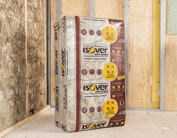 Мы всегда советуем заказчикам проверенные материалы, которые уже успели себя хорошо показать и по которым мы видим результаты на объектах, где они стоят хотя бы по несколько лет. Поэтому и в этот раз я посоветовал взять утеплитель в плитах ИЗОВЕР Тёплые Стены Стронг. Это эластичная (упругая) минеральная вата, которая соответствует оптимальному классу сохранения тепла. Для тех, кто в теме: её коэффициент теплопроводности — 0,034, что даже для минваты рекорд.