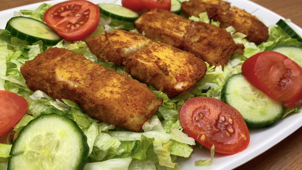Очень простой рецепт, можно использовать любую рыбу, а главное преимущество данного рецепта в том, что готовая рыба подойдет к любому гарниру! ·Время приготовления ~30 минут ·Порция: 3 шт Для данного рецепта нам понадобятся данные ингредиенты: ·600гр рыбы ·3 с.л йогурта ·2 красного перца или паприки ·1 ч. л. лимонного сока ·1 ч. л. Соли ·1 ч. л. куркумы ·2 зубчика чеснока ·1 ч.л имбиря ·2 с.л оливкового/подсолнечного масла ·Филе рыбы порежьте на полоски ·В миску добавьте йогурт, красный перец или паприку, лимонный сок, соль, куркуму, чеснок и имбирь. Все перемешайте ·В получившуюся обмазку добавьте кусочки рыбы и перемешайте ·Выкладывайте рыбу на противень и сверху смажьте оливковым или подсолнечным маслом ·Запекайте при температуре 230°C 15-20 минут Готово! Рыба получается сочной и очень вкусной, подавать ее можно с любым гарниром. Надеюсь, что вам понравится данный рецепт) А с каким гарниром любите вы употреблять рыбу? Обязательно напишите в комментариях! Спасибо за внимание)