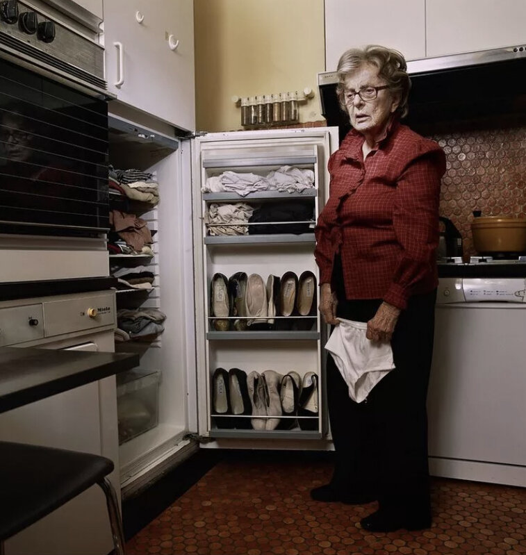 Бабушка остановилась у магазина канцтоваров, потому что ей нужна была тетрадка. Она поняла, что у нее начинаются старческие провалы в памяти, потому что она стала замечать, что ее продукты стали часто пропадать. Она достала все продукты, разложила все по полкам и записала, где что лежит, чтобы потом понять, правда ли у нее проблемы.