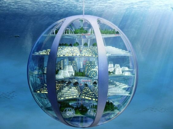 Во все времена люди пытались воссоздать мир будущего, однако только сейчас появилась возможность рисовать потрясающие модели архитектуры будущего на те случаи, ели человечеству придется осваивать океан в качестве единственного места жительства.
