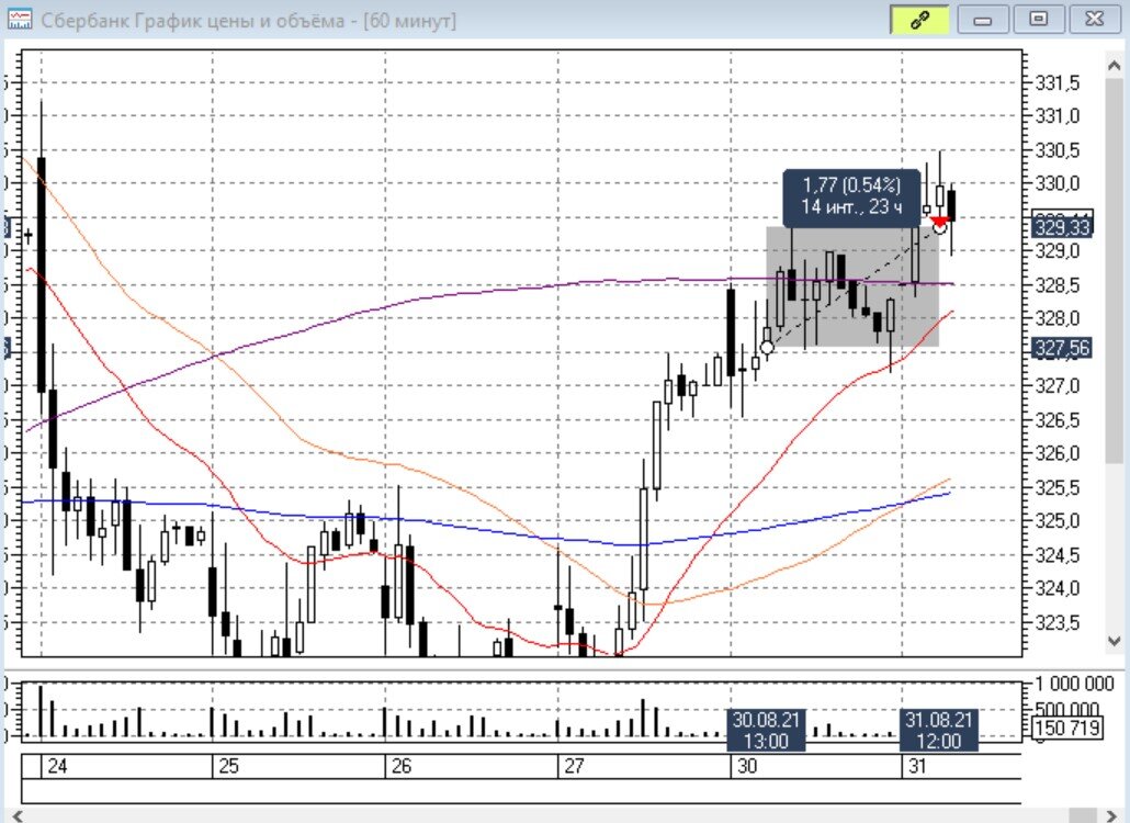 Сегодня торговый день начался с закрытия по стоп-ордеру сделки по акциям Сбербанка, всего 0,54% прибыли за 23 часа. После продолжающегося падения Сбера мы опять подобрали его акции. Так же по коррекции закрыли ордера по акциям Эталона, профит составил 1,56% за 27 дней. Данная бумага с конца мая находится во флэте в диапазоне 115 - 125 руб./акц. Подбирать ее будем по цене 119. К концу дня подобрали упавшие акции ЛСР. И для портфеля акции Детского Мира.