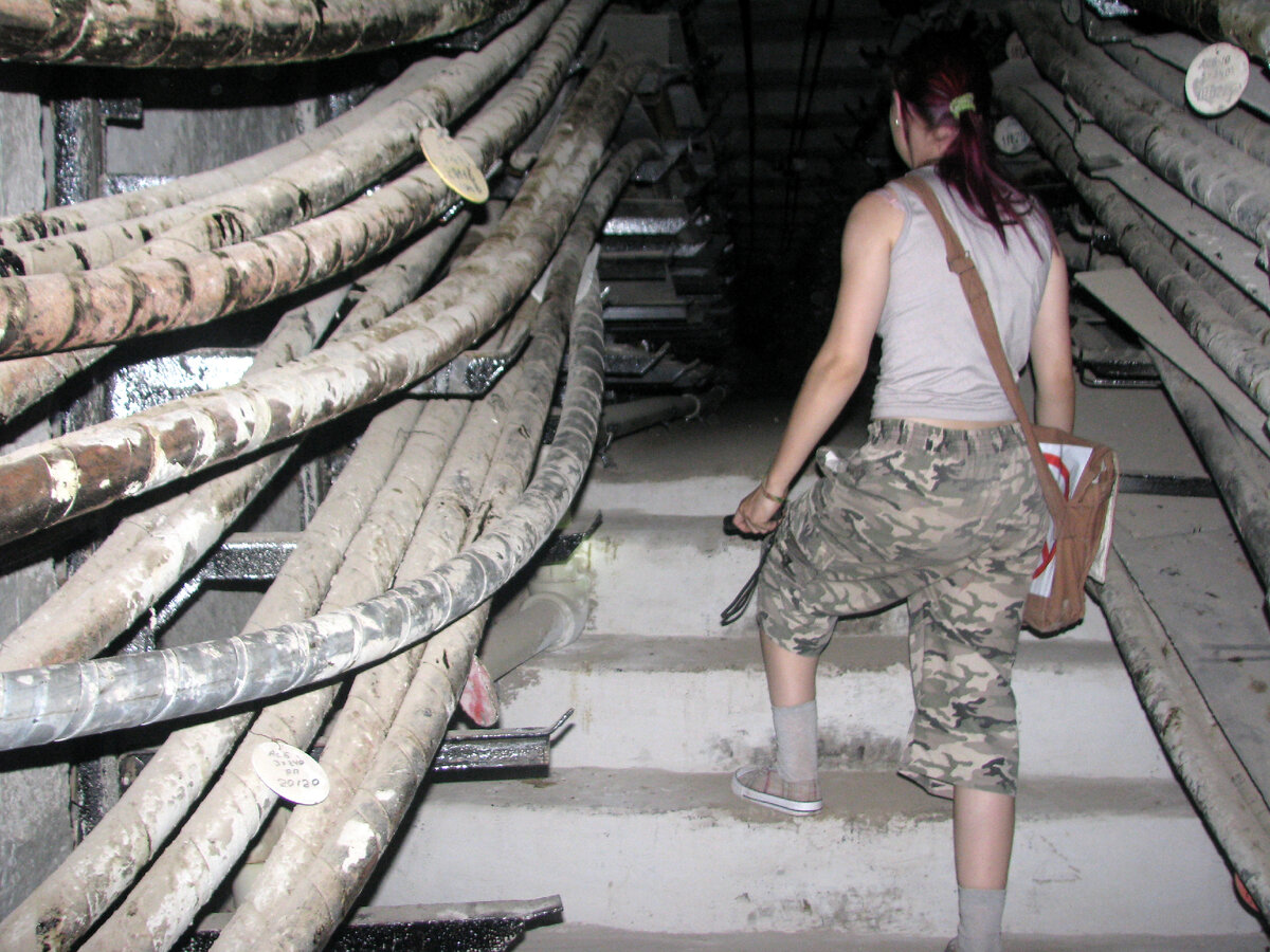 3. Что находится в конце Давайте пройдём первые 100 метров после спуска. Туннели очень однообразные, но уверяю, иногда это мнение ошибочно. Спустя метров 100, проход плавно опускается всё ниже, и продолжает идти на глубине порядка 5-7 метров под землёй. Изначально глубина заложения составляла всего 3-4 метра. А вот и первые неприятности – провода подключены к какому-то боковому отводу, но именно здесь есть возможно