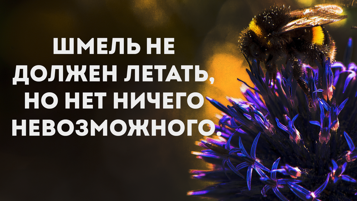 В период развития самолетостроения ученые пытались понять, оперируя законами аэродинамики, как шмель может летать. У шмеля огромный вес и маленькие крылышки. Любые другие насекомые проходили испытание, кроме шмеля.
