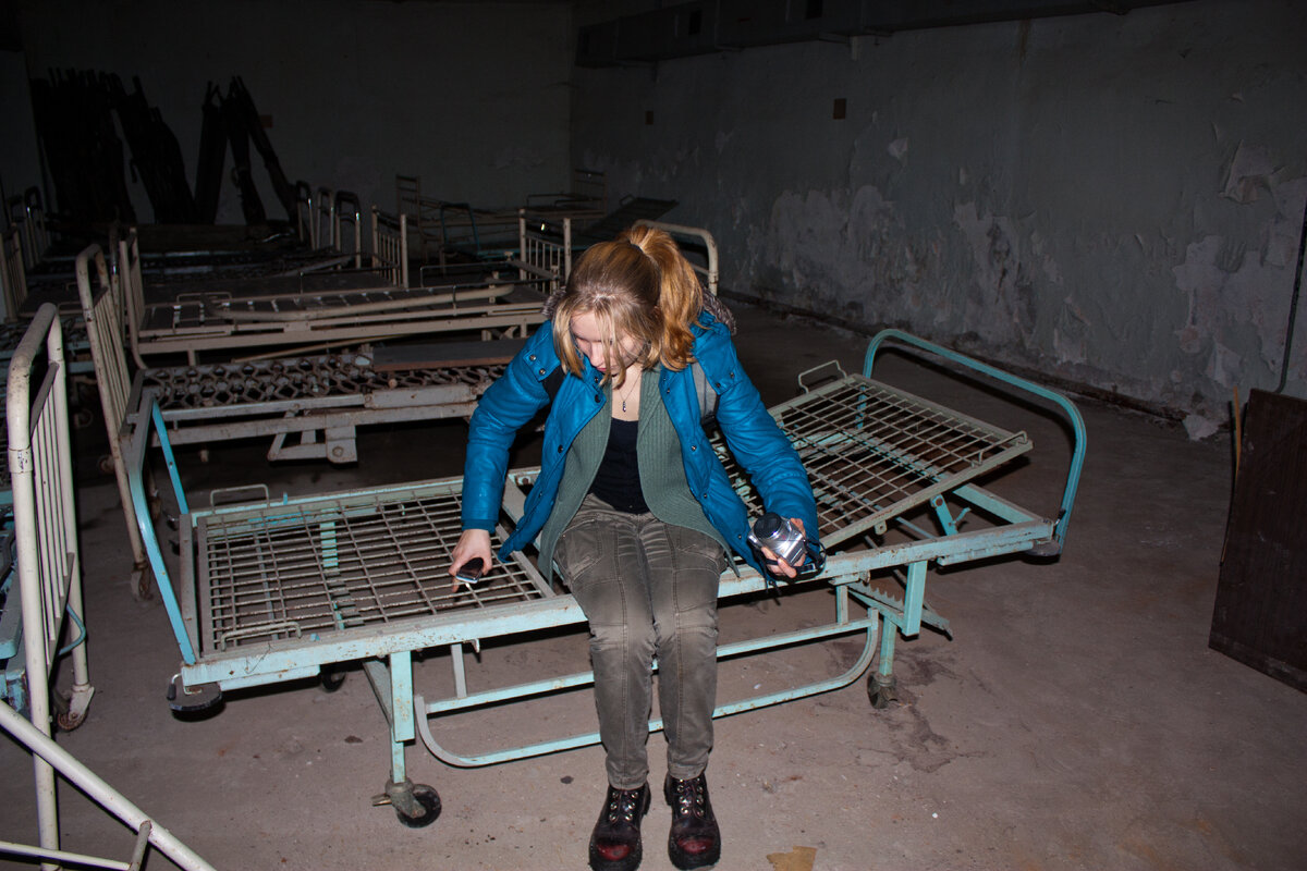 В России теме гражданской обороны уделяют или слишком много, или ничтожно мало внимания. Часть бомбоубежищ пребывает в эталонном состоянии, в то время как вторая затапливается, захламляется или распиливается на железо. Данное бомбоубежище находится в подвешенном состоянии, но пока висит со стороны эталонных. Если сверху больницам угрожает опасность с воздуха, а это может быть, как авиация, уничтожающая здания, так и отравляющие вещества, которые выбросились в атмосферу каким-нибудь заводом в обычное время, всех нужно эвакуировать в безопасное место. Таким местом и является убежище для персонала и посетителей, находящееся прям под зданием роддома. Роддом работает на все 100%, поэтому пришлось ехать туда вместе с подругой, что б без препятствий пройти внутрь. Пока все рожавшие и не рожавшие дамы шли на приёмы к врачам наверх, наш путь пролегал по той же лестнице в самый низ. Дверь оказалась открытой, но рядом был кабинет врача и оставалось лишь тихо пройти вниз, пока никого нет. Вот мы