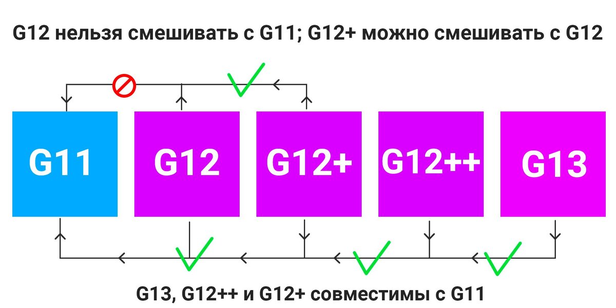 В автомобильной промышленности используются всего три вида охлаждающих жидкостей, среди которых — антифрикционные, гидравлические и термостатические. Мы поговорим об антифризах, наиболее популярных и часто используемых в различных марках автомобилей. Классификация охлаждающей жидкости Однако на сегодняшний день существуют и другие, более перспективные в плане выбора охлаждающие жидкости и их допуски. Т. е. те, которые не относятся к сериям A1 и A2, и более того, вообще к VR-1 и VR2 и даже к VTEC, так что разговор пойдет о таких жидкостях, как G12, G13, G17. Как определить, какой антифриз заливается в автомобиль Любая охлаждающая жидкость должна соответствовать температурному графику на улице, быть безопасной при эксплуатации автомобиля, и обладать антикоррозионными свойствами. Как уже говорилось выше, антикоррозийные свойства и стойкость к воздействию агрессивных сред зависят от типа антифризов. В состав антифризированных жидкостей для охлаждения двигателя входят карбоксилатные ин