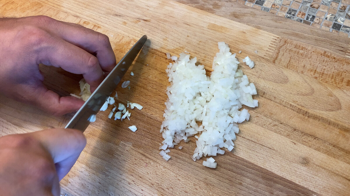 Почему-то в нашей необъятной булгур пользуется малым спросом. Вероятно, людям больше привычны другие крупы, такие как рис или греча. Но сегодня будем тащить булгур в массы и научимся готовить его вкусно и красиво, аж хоть в ресторанах подавай. Друзья, сейчас я активно качаю свой инстаграм. Большая просьба подписаться, ибо контент там немного отличается от того, что я делаю тут. Заранее спасибо. Что получится смотрите в конце. Жалко, что не могу передать вам вкус через экран. Читаем внимательно. Саму крупу мы приготовим отдельно, чтоб у тех, кто не знает с какой стороны к ней подходить, было понятие как вкусно и правильно ее приготовить. Для тех, кто в теме, скажу, что будем готовить по принципу ризотто. Ок, давайте приступим. Как приготовить булгур. Можно приготовить как написано на упаковке, но мы сделаем все намного вкуснее и изысканнее... Для начала нарежем лук и чеснок. Примерно на 200гр. булгура берем одну среднюю луковицу и 2 зубчика чеснока. Режем мелко. Обжариваем лук и чеснок