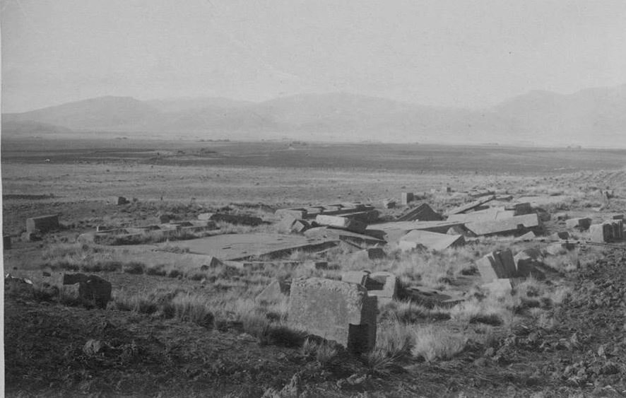Историческая фотография, сделанная Максом Уле в 1893 году. Руины на восточной стороне платформы Пума-Пунку