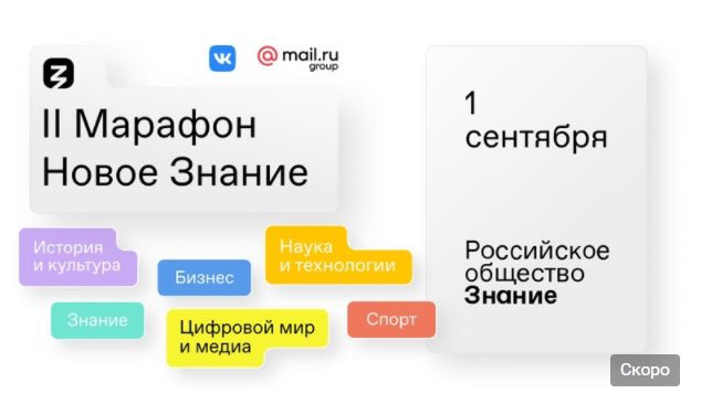 С 1 по 3 сентября 2021 года общество «Знание» проводит II Всероссийский просветительский марафон «Новое Знание». Мероприятие пройдёт в Москве, Санкт-Петербурге, Казани, Нижнем Новгороде, Владивостоке и Сочи. Каждая площадка представит одно из направлений просветительской деятельности: знание, спорт, наука и технологии, история и культура, цифровой мир и медиа, бизнес. В качестве спикеров выступят более 150 именитых экспертов. Среди них – Михаил Мишустин, Сергей Шойгу, Сергей Лавров. Секретами успеха поделятся боец смешанных боевых искусств Хабиб Нурмагомедов, хоккеист Александр Овечкин, музыкант, режиссер и продюсер Баста, основатель и гендиректор компании Wildberries Татьяна Бакальчук и другие. Ожидается участие зарубежных звезд, чьи имена пока держатся в секрете. Марафон стартует 1 сентября в 18:00 (мск) и продлится по 3 сентября. Колымчане могут присоединиться к интернет-трансляции на сайте https://marathon.znanierussia.ru и в группе в ВК https://vk.com/znanierussia. #магаданская