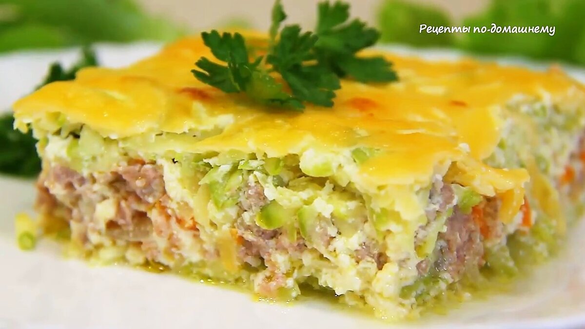Вкуснейшая запеканка из кабачков с фаршем. Очень сочная и вкусная.