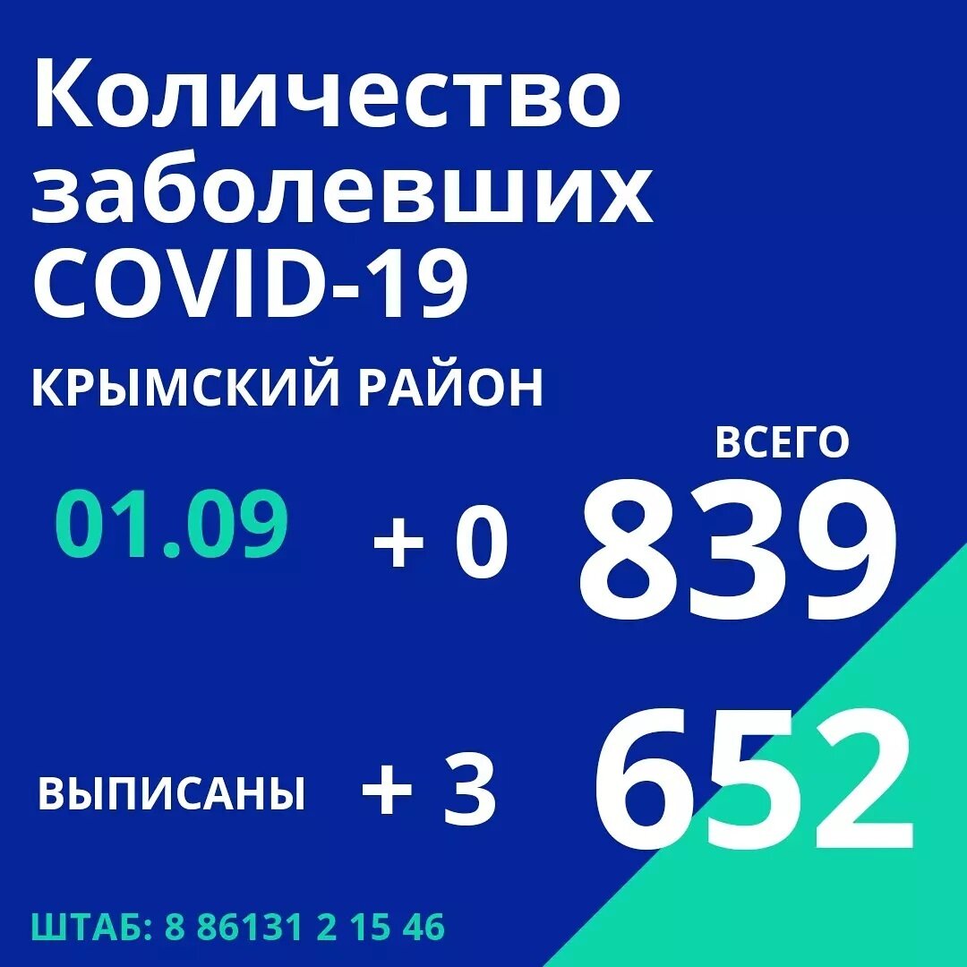 1 сентября по информации оперативного штаба Краснодарского края в Крымском районе 0 новых случаев заражения коронавирусной инфекцией.⠀
