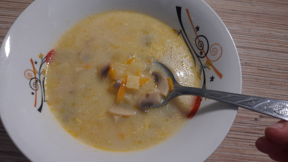 Не совсем обычный рецепт, но очень вкусно, что попробовав однажды, вы не сможете остановиться. Казалось бы, такое обычное блюдо, приготовить вкусно может не каждый. Это самый нежный, легкий, наивкуснейший суп. В первую очередь ассоциация с грибами, это всегда конец лета и начало осени, так как начинается грибная пора. Я с вами поделюсь рецептом со свежими шампиньонами. Ингредиенты: Лук-1шт Морковь-1шт Картофель-3шт Грибы-500гр Сливки- 100мл Соль-по вкусу Растит. Масло Я взяла лук порезала кубиком, морковь натерла на терке, грибы порезала полукольцами. Разогрела предварительно сковороду с растительным маслом и добавила наши ингредиенты: лук, морковь, грибы. Довела все до готовности, грибы мягкие и потемнели – значит готовы. Добавляем сливки и тушим на медленном огне 10 минут. Картофель заранее поставила вариться, чтоб сэкономить время готовки. Всю нашу смесь лук, морковь, грибы добавляем к приготовленному картофелю. Провариваем еще 10 минут и все готово. Приятного аппетита вам. Как вы м