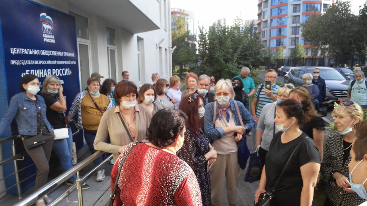 31 августа 2021 г. жильцы московских общежитий решили побеспокоить своим визитом ещё один российский орган власти – правящую партию в её главной приёмной. Истории большинства участников визита достаточно похожи. Вопреки ст. 18 закона «О приватизации Жилищного фонда», Указу президента РФ от 10 января 1993 года N 8, другим законодательным актам РФ в соответствии бывшие общежития должны передаваться в муниципальный жилой фонд, но их дома были захвачены «Моспромстроем», потом проданы «Пионер Финансу». Оная же контора выживает жителей самыми разными способами. Ремонтом (создающим невыносимые условия для жизни), странным образом вспыхивающими пожарами, охраной, где-то пытающейся не пускать посетителей, а где-то и вовсе официально прописанных жильцов. В домах по Аминьевскому шоссе 7 и 9 в настоящее время (после коллективных визитов сначала в управу, потом в префектуру) стало потише. Работники появляются намного реже и изгоняются правоохранителями намного активнее. Но на Жигулевская 4 к. 2 и