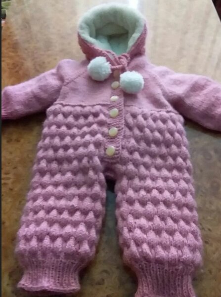Вязаные вещи всегда приносят не только тепло, но и удовольствие с самого процесса. Дочка обкрадывала нас, что через два месяца у нас будет пополнение в семье. После ее сообщения я решила сделать ей подарок связать малышке комбинезон к выписке. Просмотрев множество видео и узоров, мне приглянулся детский объемный узор "пузырики". Вяжется легко и смотрится просто великолепно. Для работы я приобрела 4 моточка по 100 гр. - шерстяной пряжи "Пехорка" терракотового цвета. Рассчитав все петли, я принялась к своей работе. Ввязывала комбинезон сверху вниз регланом, и он у меня полностью получился бесшовным - это просто идеальный вариант, для малышей. В процессе вязания использовала спицы № 2, 5 - полотно получается ровным и не сильно плотным. Начала вывязывание с капюшона, для этого на спицы № 2, 5 набрала 61 петлю и повязала бейку платочной вязкой в высоту 4 см., затем продолжала вязание уже узором "пузырики" . Узор "пузырики" 1 по 6 ряд - лицевая гладь с изнаночной стороны вяжем изнаночными п