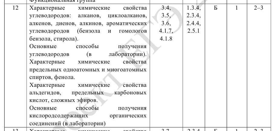 Чтобы понять, как будет выглядеть обновленное задание 12, читаем официальную информацию (с сайта ФИПИ): Элементы содержания «Химические свойства углеводородов» и «Химические свойства кислородсодержащих органических соединений» (в 2021 г. – задания 13 и 14) будут проверяться заданием 12. В обновлённом задании будет снято ограничение на количество элементов ответа, из которых может состоять полный правильный ответ. За правильный ответ на это задание вы получите 1 балл Изменение задания 12 не влияет на изменение хода подготовки к ЕГЭ: органическую химию, как и раньше, необходимо освоить в полном объеме – эти же темы проверяются в вопросах 14,15,16 и во второй части ЕГЭ. Давайте разберем задание, предложенное в демонстрационной версии ЕГЭ: Решение: Для каждого из предложенных веществ необходимо ответить на вопрос: вступает ли оно в реакцию жесткого окисления и если да, то какими будут продукты реакции. 1) Гексен-1 – алкены при жестком окислении образуют карбоновые кислоты CH₃-CH₂-CH₂-CH₂-C