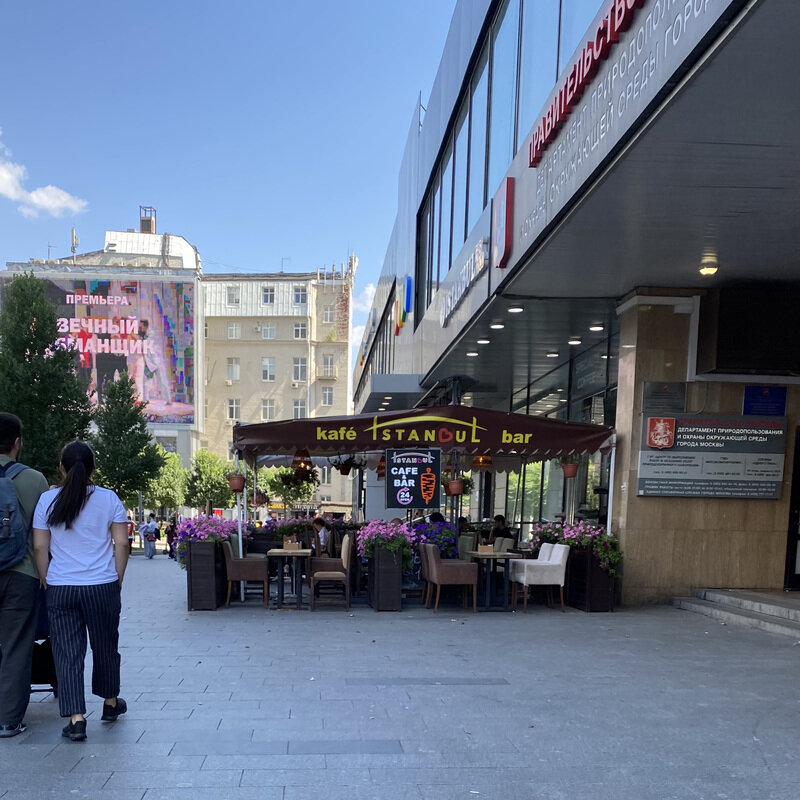 При моем канале появился чат в Яндекс.Дзен - присоединяйтесь . Там я отвечаю на ваши вопросы. Дата и время посещения — 31 июля 2021, суббота, 13:05 Ближе к началу Нового Арбата, между «Детским миром» и Департаментом природопользования и охраны окружающей среды города Москвы, в широкий тротуар нечетной стороны врезается коричневая веранда. Она скрывает за собой мини-помещение шаурмичной, которая за годы своего существования тихо и незаметно превратилась в турецкий кафе-ресторан. Под коричневым тентом с желтой надписью «Kafe Istanbul bar» разместились мелкие столы потрепанного вида. Интерьер и атмосфера Внутри два уровня, искусственный кирпич, бар и кухня в дереве, два вертикальных гриля и редкие дешевые декорации. Музыка – орущая поп-Турция. Среди наружных красот – вывеска «24 часа» и живые растения в горшках и кадках. В витринном окне стоят бутылки из-под виски и висят уродливые фотографии блюд. Еда Меню – заляпанные страницы пластика в картинках. В наборе Турция, донер, кебабы, смесь