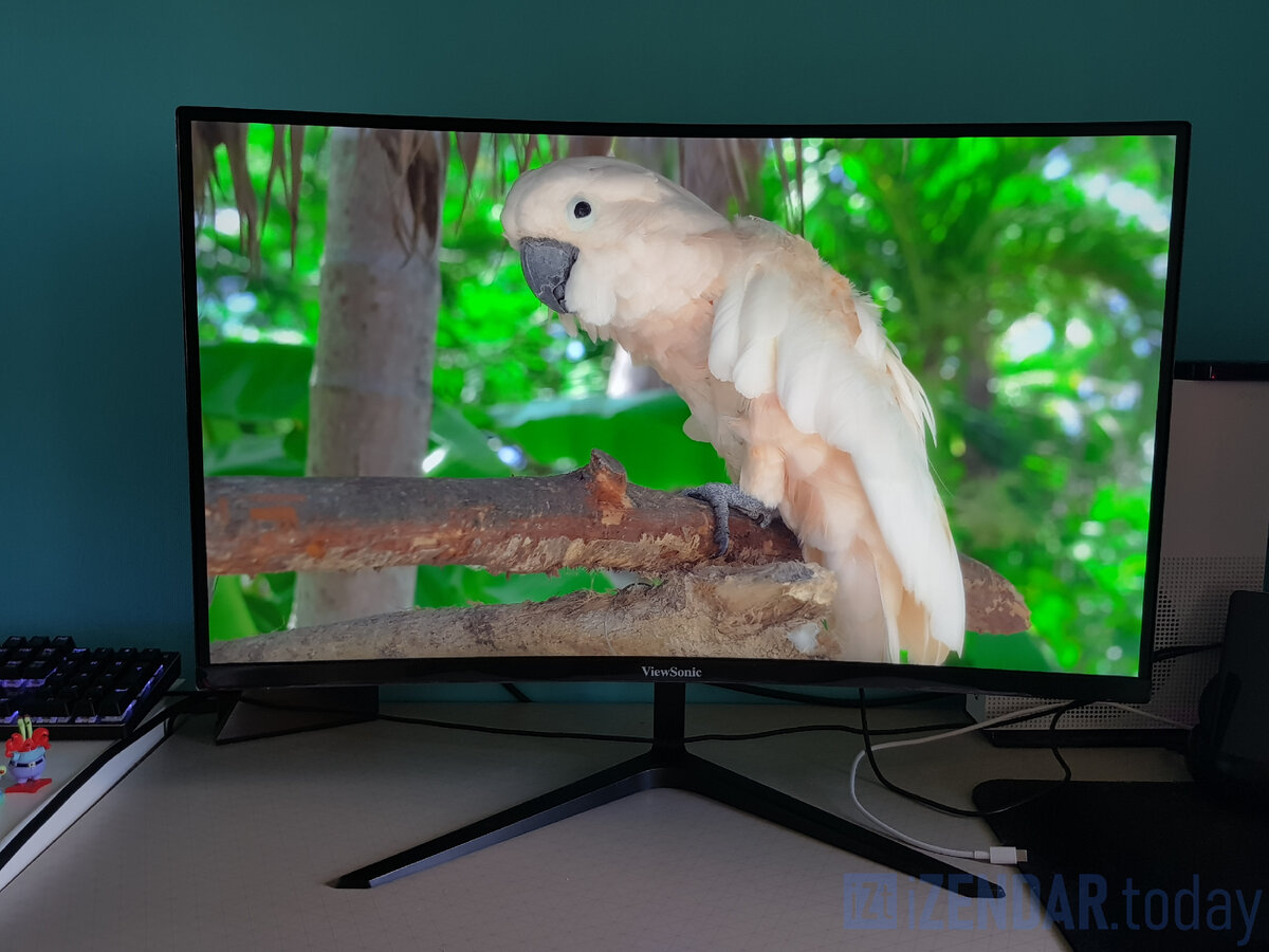Конечно, в первую очередь, это сделано ради экономии. Тем не менее, сказать что он выглядит дёшево, на мой взгляд нельзя. Компактная подставка, узкие рамки, изогнутая матрица — точно такой же дизайн может быть и у монитора в два раза дороже. Кстати, что касается изгиба — при диагонали 27 дюймов и обычном соотношении сторон 16:9, я, честно говоря, считаю что какой-то практической пользы от него нет. Но, видимо, ViewSonic смотрели на конкурентов у которых тоже есть этот изгиб и решили не отставать. Впрочем, в моих сценариях использования он мне никак не мешал. Сидеть в инете, набирать тексты, играть, работать в видеомонтажке или смотреть видосы мне одинаково удобно и на плоском, и на изогнутом. Хотя, очевидно, в некоторых задачах плоская поверхность окажется предпочтительнее.