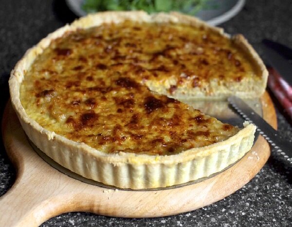Луковый пирог – рецепт настолько давно и прочно укоренившийся в русской кухне, что уже почти никто не помнит, что это французское блюдо. Причем, как и большинство знаменитых французских блюд, луковый пирог возник на крестьянской кухне, как еда для бедных. Я вспомнила об этом рецепте, когда покупала на рынке несколько килограммов репчатого лука. Луковицы были такие круглые, сочные, золотистые и такие аппетитные, что невольно захотелось приготовить из них что-нибудь вкусное, с большим количеством лука. Кроме лукового супа, который я очень люблю, не менее вкусный и французский луковый пирог, рецепт которого я привела на этой странице. Если вы никогда не готовили его, очень рекомендую: попробуйте! Его не сложно приготовить, и вы не пожалеете, это вкусное и полезное блюдо, настоящий изыск французской кухни. Ингредиенты: Для теста: Для начинки: Приготовление: Сделайте начинку: Очистите луковицы, сполосните их в воде, а затем нарежьте полукольцами. Растопите сливочное и оливковое масло в боль