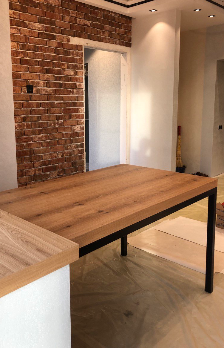 У нас часто заказывают столешницы, облицованные шпоном. Превосходные характеристики этого природного материала давно оценили производители мебели и элементов интерьера. Поскольку толщина основы варьируется, мы можем изготовить в шпоне любые элементы мебели от фасадов и боковин до полок и задних стенок. У нас можно заказать детали для кроватей, интерьерные панели, рейки, межкомнатные двери, дверные полотна для шкафов купе и прочее, в т. ч. и шпонированные столешницы на заказ. Когда стоит приобрести столешницу в шпоне Если вы решили объединить кухню со столовой важно, чтобы рисунок на обеденном столе совпадал с рисунком гарнитура. Поэтому у нас заказывают сразу весь комплект (включая столешницу), что гарантирует полное попадание. Варианты исполнения могут быть самыми разнообразными. При обустройстве офисных помещений столешницу на заказ тоже стоит приобретать вместе с остальными шпонированными изделиями. Дизайнеры активно используют шпонированные панели для отделки стен и потолков. А зна