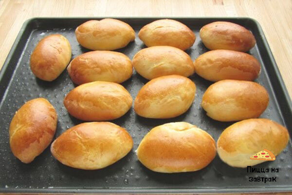 12. На смазанный маслом противень выкладываем пирожки и отправляем в разогретую духовку на 25-30 минут. Температура 180 градусов. Следим, как наши пирожки поднимаются и румянятся.