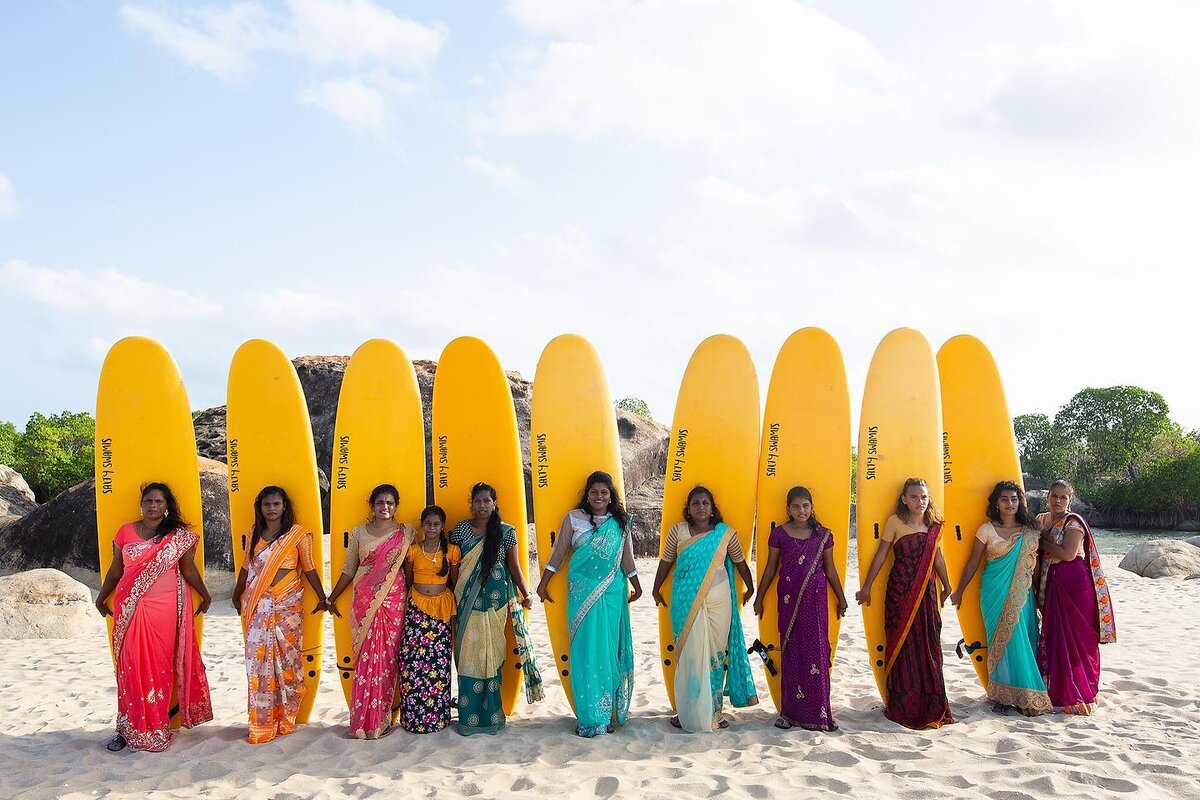 В Аругам Бэй целеустремленные местные женщины создают для себя пространство на лайнапе, где раньше им были не рады Шамали Санджая, смелая 30 летняя молодая мама и энтузиаст серфинга из маленького города Аругам Бэй на восточном побережье Шри Ланки, является президентом первого в стране полностью женского серф клуба. Она занимается административной работой и организует серф трипы для небольшой, но уверенно растущей группы из 17 местных девушек-серферов. А ведь еще несколько лет назад серферские будни Шамали в Аругам Бэй выглядели совсем не так. Когда Санджая училась кататься на доске около 8 лет назад, она была единственной девушкой на лайнапе. “В то время никто из девушек не серфил,” говорит Санджая. “Мой брат — серфер номер один на Шри-Ланке, папа тоже хорошо катается. Когда мой кузен учил меня кататься, он сказал, ‘Шамали, я думаю, серфинг у тебя в крови.’ Здесь на Шри-Ланке девушки сидят дома или ходят в школу. Замужние заботятся о мужьях и детях. Люди думают, что серфингом занимаютс