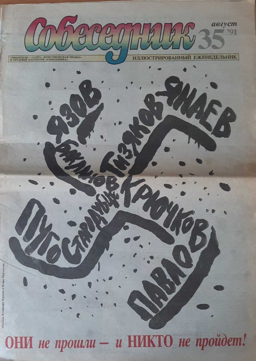 Документ эпохи – номер еженедельника «Собеседник», вышедший в свет ровно тридцать лет назад и посвящённый событиям 19-21 августа 1991-го года, которые журналисты поспешили назвать путчем. Стоит рассмотреть эту газету поближе – очевидцы, как правило, не замечают главного, но из их показаний довольно точно складывается общая картина. Удивительно, но люди, пишущие: «разбежались ОНИ, а не МЫ», «нет хунты без добра», «все, кто были на площади у Белого дома, под смертью, как никак, ходили», игнорируют несоответствия текста и смысла, формы и содержания. Бездействовавшие в ожидании неизвестно чьего приказа войска никуда не разбегались, ни в кого не стреляли, а ГКЧП так же похож на хунту, как публикующая эти слова газета – на New York Times. Авторы «Собеседника» опьянены чувством свободы, доставшейся им не просто легко, а на халяву, спешат этим чувством поделиться и проговариваются, выбалтывают лишнее. «Вслед за госсекретарём Бурбулисом бежит полуголый телохранитель в белом модном бронежилете с