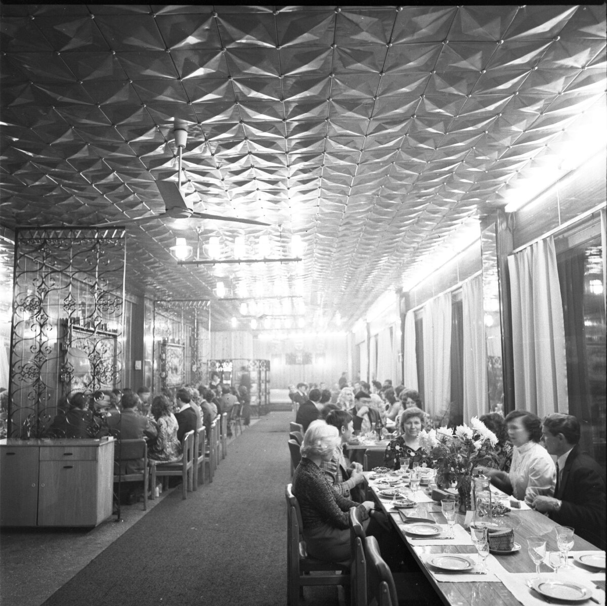 Советский общепит отличался разнообразием от дорогих ресторанов до скромных буфетов и рабочих столовых. Судя по моему опыту хождения по ресторанам времен СССР, многие рестораны не отличались разнообразием интерьера и меню. Круглый зал ресторана Ореанда в Ялте, ресторан Останкинской башни в Москве или ресторан Динамо в Киеве и прямоугольные залы остального большинства: Пытался найти в себе ресторанную душу, но не нашел. Меню однообразное, алкогольные напитки до 23-00, а во многих случаях до утра. Музыка стандартная, кабачная: Работники общепита, прошу их не ругать: Следующая категория общепита кафе или в простонародье кафешки. Здесь уже нет атмосферы пьянства и кабацких перевернутых столов, вызовов милиции и тому подобного..... Наверное оптимальный вариант для недорого поесть, пообщаться, отдохнуть после прогулки: Следующая категория общепита кафе-рестораны на вокзалах и их филиалы на колесах: вагоны-рестораны: Честь и уважение поварам, которые вкусно варят нам: Следующая номинация