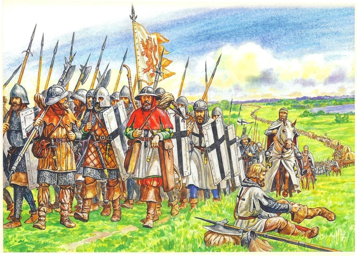 1394 год. Восточная Европа Весной 1394 года, когда ушли зимние холода и растаяли лед и снег, великий магистр Тевтонского Ордена Конрад фон Юнгинен (1) повел армию на Литву. Тевтонцы, пилигримы из Франции, Англии, Германии, 150 лучников из Бургундии (их вел граф Дитрих фон Логендорф), небольшой отряд литовцев и русских из дружины князя Швидригайло Ольгердовича, в помощь которому был организован этот поход, плыли на судах по реке Неман. Конница шла сушей вдоль берега. С собой вези бомбарды, катапульты и другую осадную технику (смотри публикацию «Прелюдия»). Таким путем войско добиралось до замка Рагнита. У замка Суппам их засекли разведчики из жемайтов и доложили о крестоносцах князю Витовту, правителю Великого княжества Литовского, Русского и Жемайтского (2). Тот поспешил с армией, в которую входили литовцы, жемайты, русские, поляки, к Неману. Крестоносцы высадились у останков замка Риттерсвердера, сожженного ранее Витовтом (смотри публикацию «Из беглецов в Великие князья»). Замок во