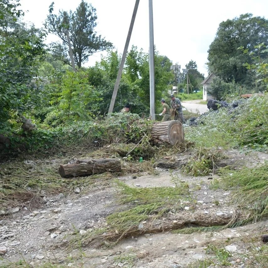 С утра вместе с местными жителями, представителями администрации, казачества, спасателей был убран нанесенный водой мусор с игровой площадки. Теперь на месте остались работать казаки и спец. техника.