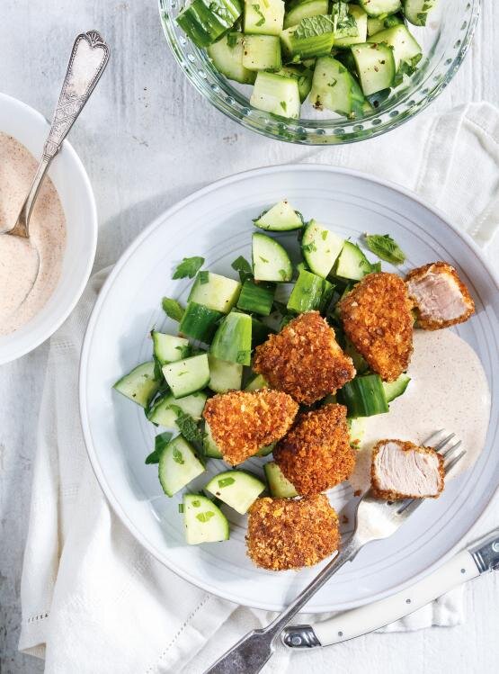 Ищете несложный ужин? Этот рецепт свинины в стиле наггетсов, готовится около 30 минут, а мясо получается очень нежным внутри и хрустящий снаружи. Ингредиенты Йогуртовый соус Свинина Приготовление Йогуртовый соус В небольшой миске смешайте все ингредиенты. Приправить солью и перцем. Охладите, пока не будете готово к подаче. Свинина Приятного аппетита!