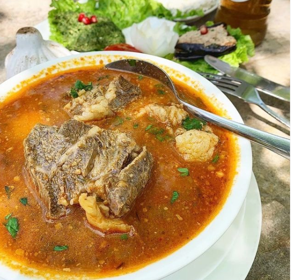 Харчо же бывает двух видов: суп и Мегрельский харчо в виде рагу, это когда можно язык проглотить. Его подают с кукурузовой кашей, и это, ребята, просто песня. Если попадёте в Грузию, обязательно отыщите это блюдо.