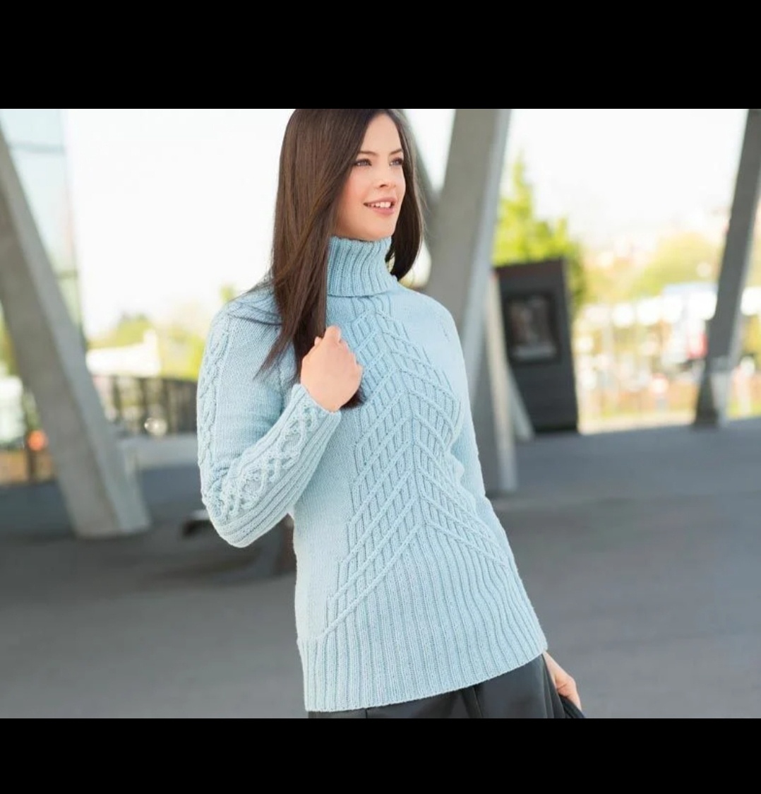 25 п. х 31 р. = 10 x 10 см, связано лицевой гладью и узором из кос (измерять в слегка растянутом виде);