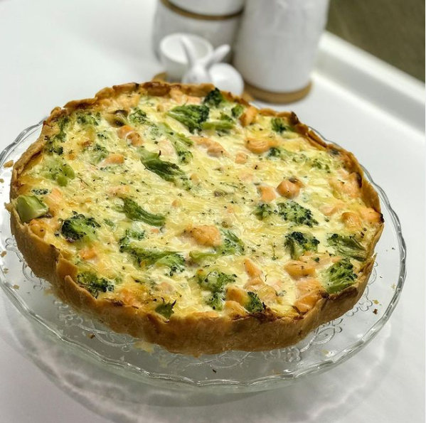 Чистим стейк лосося от кожи и костей. Нарежем лосось на кусочки на разделочной доске. Также нарежем на кусочки брокколи. А сыр натрем на терке. Сбрызнуть семгу и брокколи лимонным соком, поперчить, посолить, добавить прованские травы по вкусу и перемешать со 100 г тертого сыра. Добавить яйца и сливки. Оставить начинку пока в сторонке.