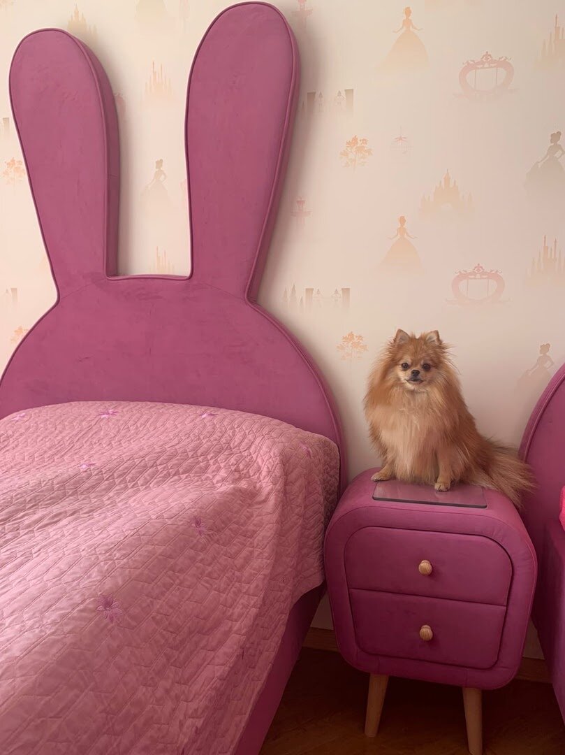 Привлекает ребенка в спальную зону благодаря изголовью в виде ушек кролика. Есть варианты мягкой обивки из велюра, экокожи и искусственной шерсти. Есть дополнительная опция — подъемный механизм, чтобы хранить вещи.