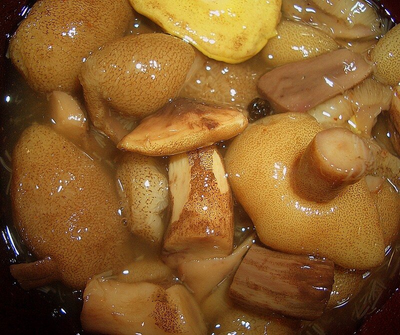 Привет, дорогие читатели! Этот рецепт маринованных маслят позволит вам не только запасти грибы на зиму, но и приготовить необыкновенно вкусную готовую закуску, которая не раз выручит вас, когда нужно будет быстро поставить на стол что-то вкусное. Ингредиенты : Приготовление : 1. Берем грибы маслята чистим от маслянистой верхней кожицы на шляпках. Лучше это делать, пока грибы сухие. Затем маслята хорошо моем в большом тазу с водой. Обычно грибы всегда так моют, тогда песок и другие тяжелые частицы грязи, хвойные иголки и пр. осядут на дне. 2. Затем грибы порезать и сварить в кипящей подсоленной воде в течение 10 минут. Добавив лимонную кислоту на кончике чайной ложечки. Это нужно чтобы грибы не потемнели. Затем воду сливаем, а маслята заливаем другой порцией кипящей воды (посоленной и подкисленной) и варим еще 15 минут. Затем стерилизуем банки. 3. Готовим маринад: Берем 1 литр воды, добавляем туда соль грубого помола без йода, сахар, горошин черного перца, горошины душистого (крупного)