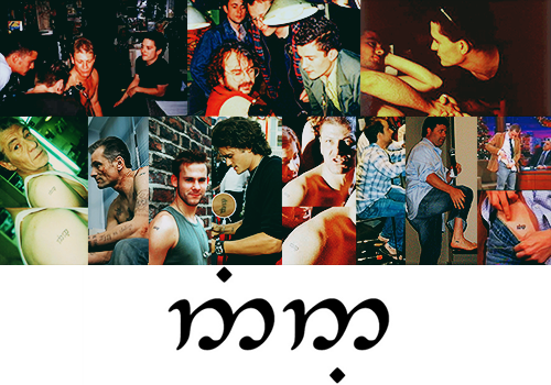 - Восемь из девяти членов Братства сделали себе татуировку в виде эльфийского символа «9». У Элайджи Вуда татуировка находится внизу живота, у Шона Эстина и Билли Бойда – на лодыжке, у Орландо Блума – на предплечье, у Иэна МакКеллена, Доминика Монахэна и Шона Бина – на плече. Джон Рис-Дэвис отказался делать татуировку. Питер Джексон также сделал себе татуировку в виде эльфийского символа «10».