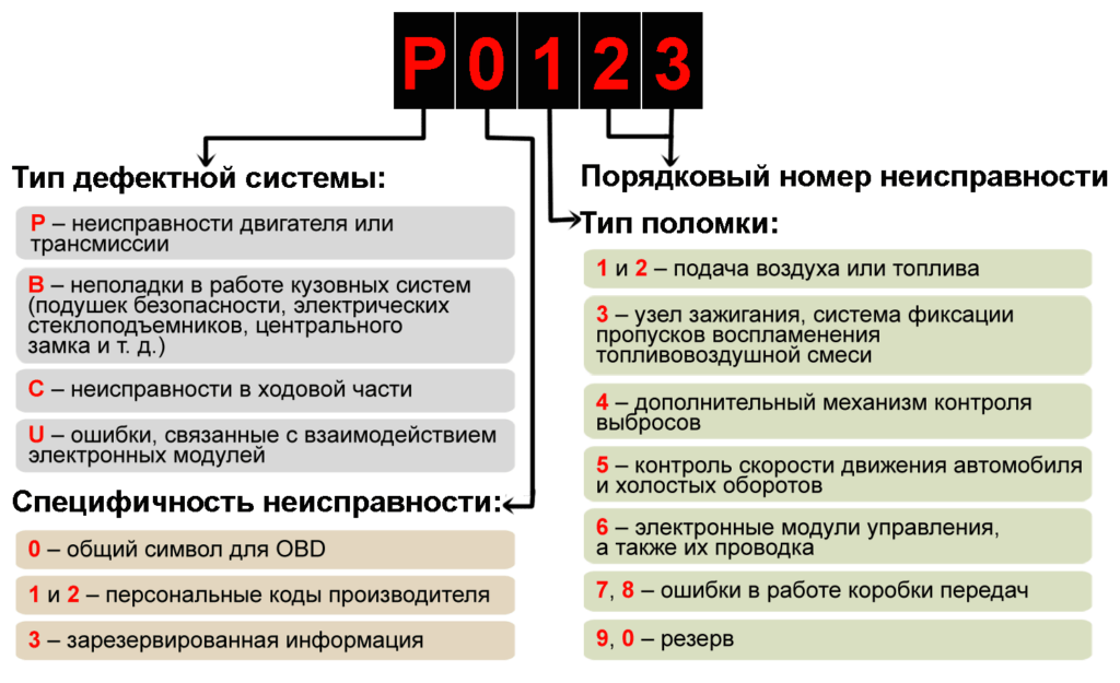 Четвертый и пятый символы указывают на порядковый номер неисправности.