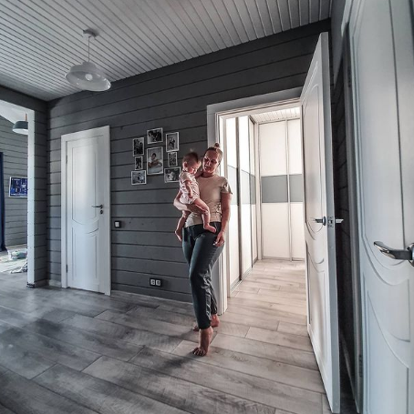 Я лично против плитки или столь популярного керамогранита на полу во всех помещениях. Для меня это уместно только в "мокрых" комнатах типа ванной или котельной и на входе в коридоре или тамбуре, там где в уличной обуви ходят. Сейчас попробую объяснить почему так. Во-первых, любой из этих материалов сам по себе холодный. Что плитка, что керамогранит, без разницы. То есть даже в жаркий день он прохладный. Летом это может и плюс. У нас во всем доме отопление через тёплый пол. И когда котёл работает, на плитке стоять очень уютно и тепло. Но котёл не работает 24/7, т.е. большую часть времени плитка остаётся холодной, холоднее чем ламинат в остальных помещениях. Из-за этого ощущения по мне так ламинат гораздо уютнее. Во-вторых, мне просто визуально не нравится делить помещение кухни-гостиной на зону кухни с плиткой на полу (или керамогранитом) и зону гостиной с ламинатом. Не в каждом помещении, на мой вкус, это деление уместно. У нас в доме вообще получилась бы ерунда со столом, ну к примеру