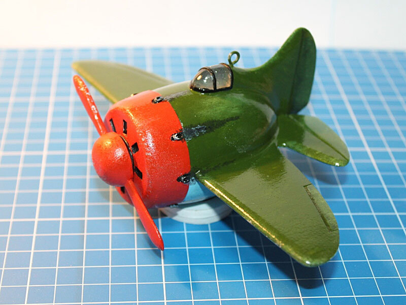И снова eggplane, на этот раз - истребитель тридцатых годов прошлого века. Образ, в основном, взят с И-16, но, естественно, ни о каком точном соответствии речь не идёт Сделан небольшой "обгадинг" - следы копоти от выхлопа, неравномерность окраски, выгорания - опять же, всё на игрушечном уровне. Ну и дополнено ленточкой для подвешивания Весь комплект на сегодняшний день Продолжение следует...