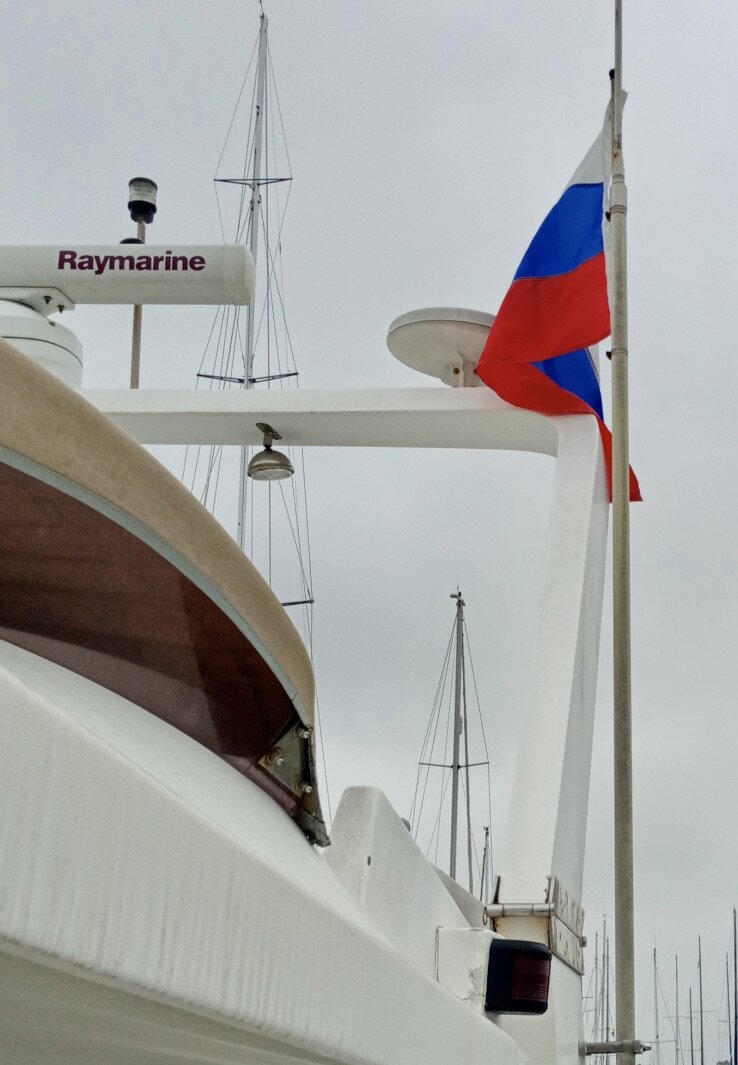 Когда яхта становится местом проживания, её владелец, уже там обустраиваясь, обязательно вносит на борт своё понимание как это сделать. У всех оно разное, но часто бывает так, что на гафеле появляется небольшой, но очень приметный флажок, по которому уже несложно сказать кто здесь капитан. И моя яхта стала мне в Америке домом, и я принёс на борт то, что посчитал необходимым, и на ней тоже развевается на ветру флажок, по которому нетрудно определить на каком языке я говорю с детства. Не каждая небольшая моторная яхта оснащена, считавшегося до недавнего времени, традиционным для корабля рангоутом и такелажем. Да и оборудование маломерных судов отличается от набора приспособлений на пассажирских и грузовых. Немудрено, что сигнальная мачта зачастую отсутствует и вполне может не быть гафеля, часто используемого для сигналов и флагов. Однако это вовсе не значит, что нельзя вывесить вымпел или небольшой флажок, идентифицирующий владельца, а, вернее, страну, из которой тот приехал и осел здес