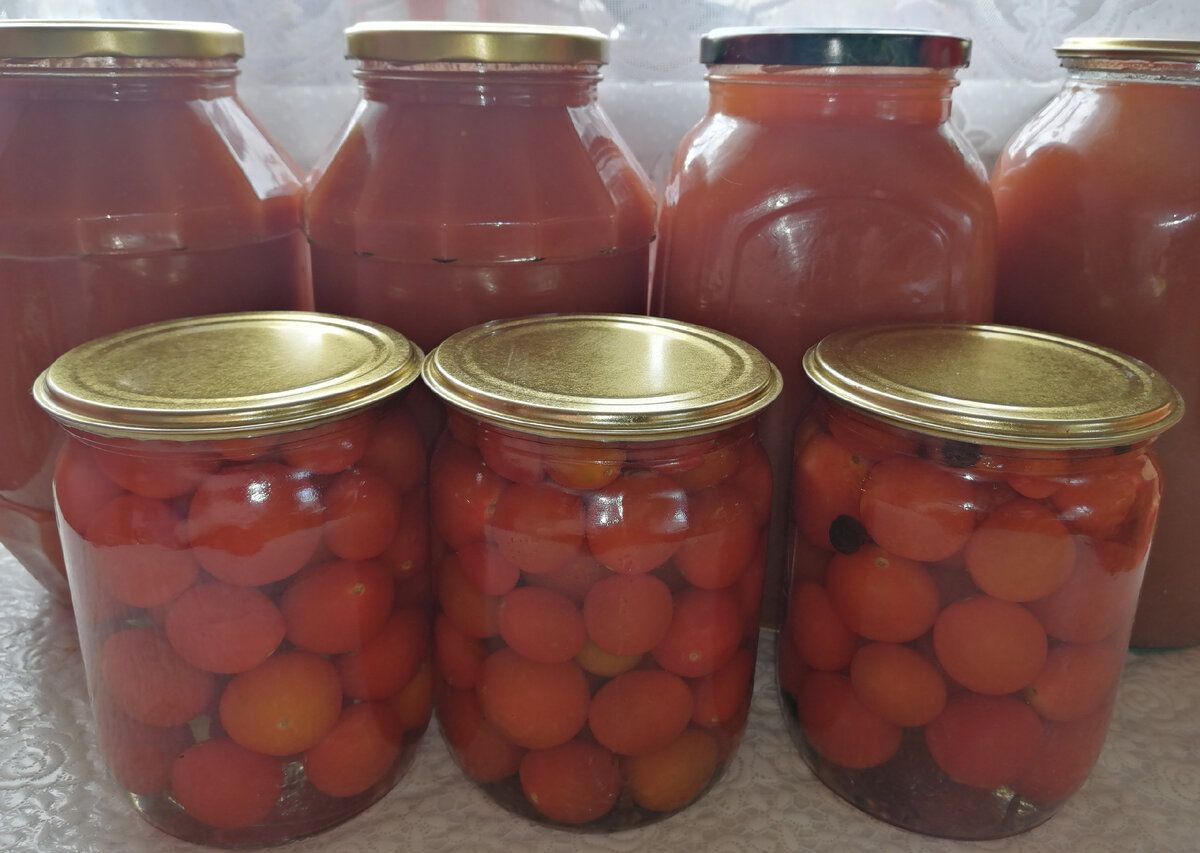 Закрываю томатный сок я в полтора литровых банках, так как семья у нас небольшая.