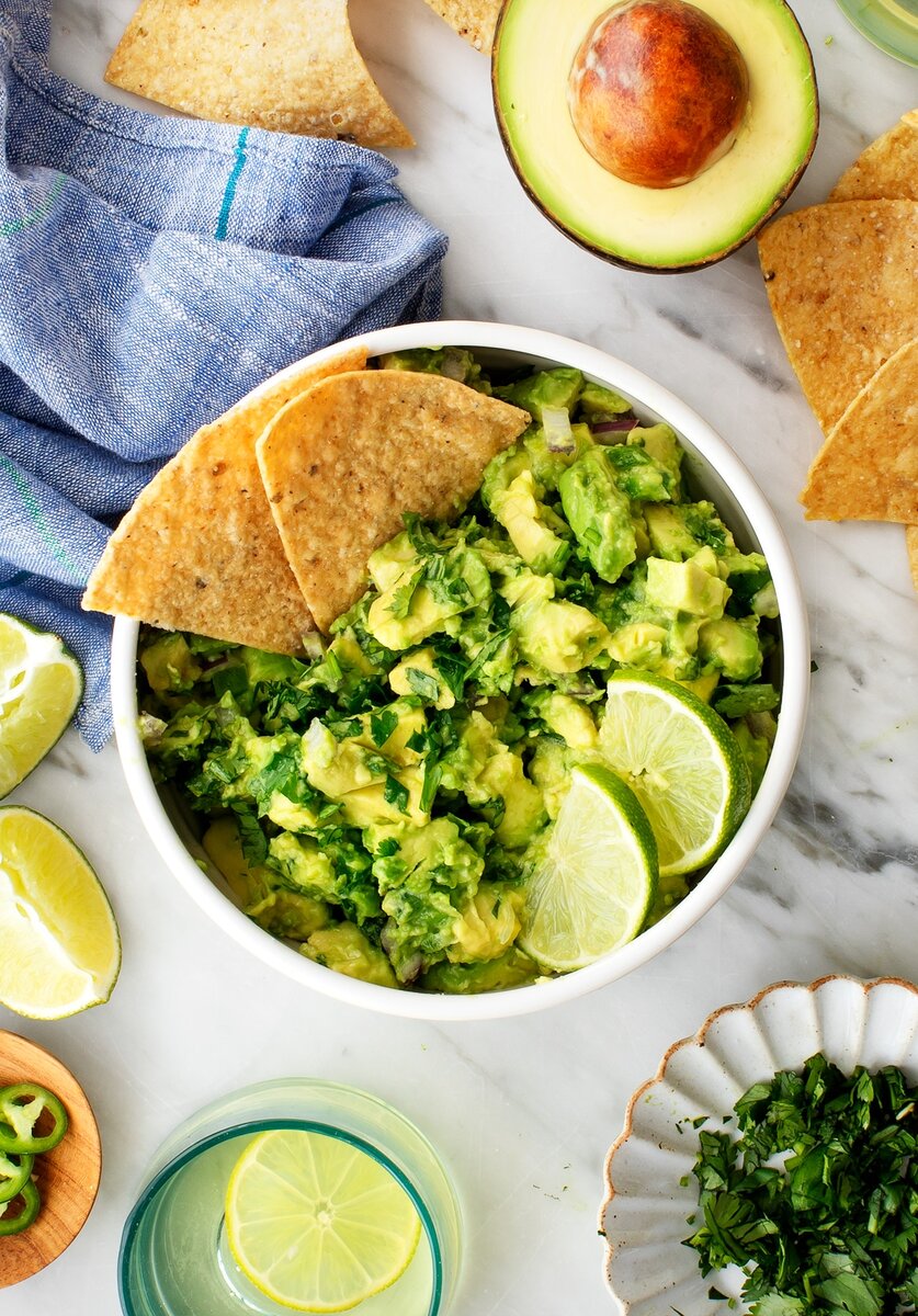 ЛУЧШИЙ рецепт гуакамоле! Всего из 6 простых ингредиентов, это легкая закуска для вечеринки или вкусная начинка для тако, буррито и многого другого. Ингредиенты: Как приготовить В большой миске смешайте авокадо, лук, кинзу, цедру и сок лайма, халапеньо, соль и тмин. Разминайте до тех пор, пока ингредиенты не станут однородными, но все же будут небольшими кусочками. Приправить по вкусу. Подавать с чипсами из тортильи.
