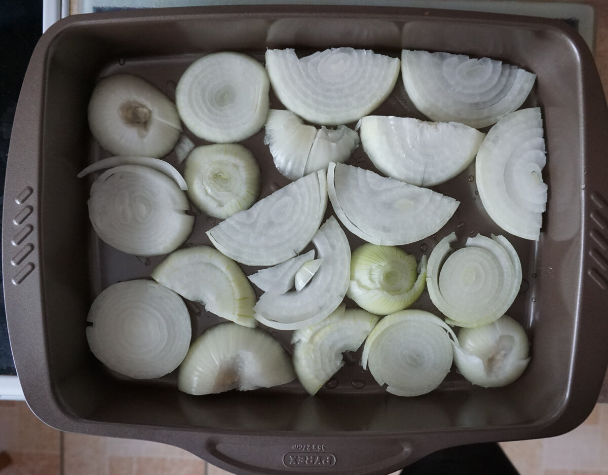 Когда то давно я наткнулся в инете на рецепт приготовления морского окуня. На дно формы для запекания выложить в один слой тонко нарезанные кружки картофеля, тушки окуня посолить и покрыть томатной пастой, выложить сверху на картошку, закрыть кружочками лука и в духовку на 180-200 градусов, а незадолго до готовности достать полить оливковым маслом для образования румяной вкусной корочки и обратно в духовку. Делал так не раз и всегда было очень вкусно! Но потом то окунь мелкий в магазине, то чего другого хочется... А вчера окунь показался мне приемлемым по размеру и решил повторить. Но дома уже творчески поменял рецепт. И лук пошел у меня вниз вместо картошки. Окуня почистил и тут вспомнил, что томатной пасты нет. На ходу заменил ее протертыми помидорами. И отправил в духовку... Оливковым маслом забыл полить (а зря). Но все равно получилось очень вкусно!!! Угощаю... ;-)))