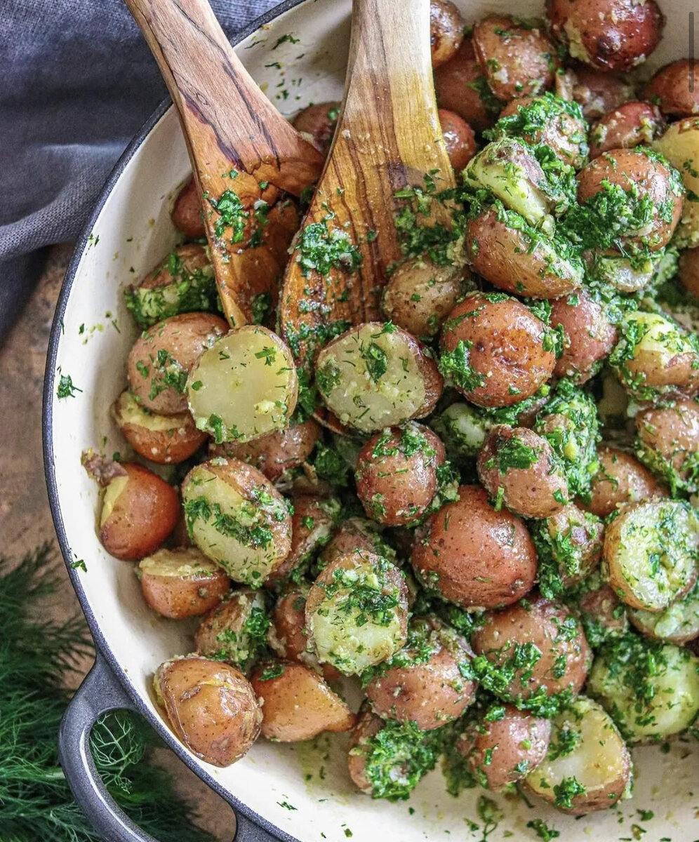 Быстро и вкусно бывает , когда на гарнир молодой картофель, а если еще со своего огорода ммм, на местных рынках тоже можно ухватить! Приступим к рецепту! Ингредиенты 🌿 1,3 кг молодого красного картофеля 🌿 1/2 ч.л. соли 🌿 1 ч. л. соды 🌿 1/4 мелко нарезанной кинзы 🌿 1/4 мелко нарезанной петрушки 🌿 1/4 мелко нарезанного укропа 🌿 1/4 мелко нарезанного зелёного лука 🌿 4 зубчика чеснока 🌿 цедра 1 лимона 🌿 сок 1 лимона 🌿 1/4 стакана оливкового масла 🌿 соль и перец по вкусу Приготовление Приятного аппетита ❤️🌿