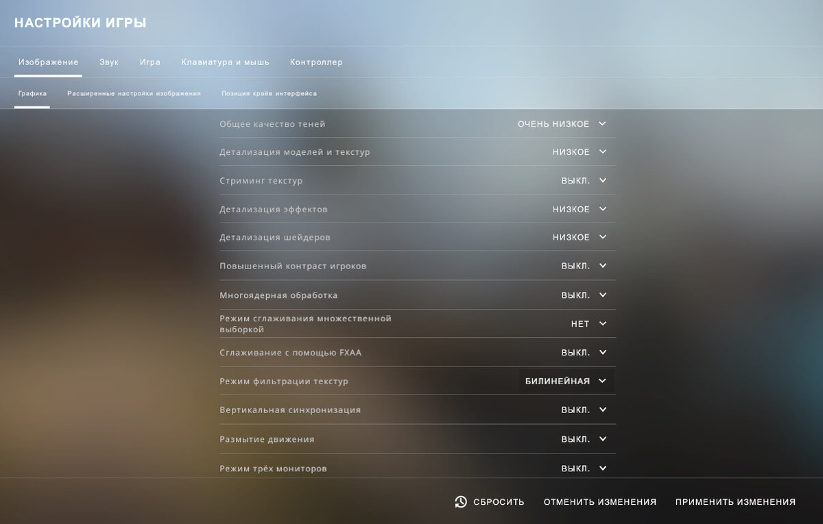 Все киберспортсмены ставят в игре низкие настройки графики. Причина здесь проста — они желают максимальной производительности от ПК, чтобы не было даже малейшего шанса на лаги. Учитывая их конфигурации, такой подход может вызывать у некоторых игроков полный ступор. Однако лучше попробовать выставить все настройки графики на минимум. Стоит разобрать конкретнее все параметры: