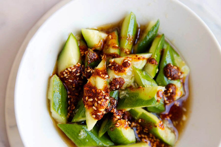 Ингредиенты: 1 шт – длинный огурец 3 зубчика – чеснока 1 ст.л – светлого соевого соуса 1 ч.л – темного рисового уксуса 1 ст.л – кунжутного масла 1-2 ч.л – чили масла ¼ ч.л – сахара соль по вкусу Приготовление: Приятного аппетита! Если вам понравилось, поставьте 👍, чтобы я мог понимать предпочтения участников канала и быть более полезным.