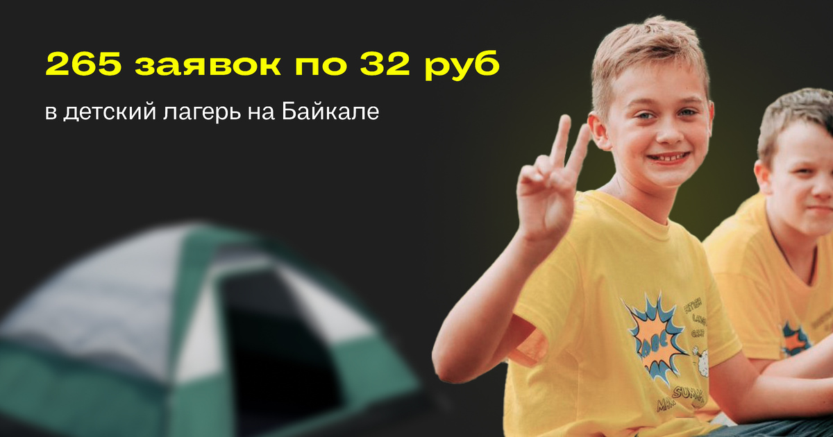 Проект: Детский лагерь на Байкале. Обучающий детей профессиям будущего, подросткам помогает определится с профессией их жизни. Лагерь для детей от 12 до 17 лет Задачи: Собрать целевые заявки в детский лагерь на Байкале Целевая аудитория: Мамы с детьми от 12 до 17 лет Структура воронки: Льем трафик на на чат-бот - коллцентр обрабатывает входящие лиды - приглашают родителей на бесплатный осмотр лагеря Креативы: Результат: Скриншот из рекламного кабинета: Отзыв клиента: Илья Топорков Digital media buyer, marketing manager, таргетолог Для сотрудничества https://t.me/digital_media_buyer https://www.instagram.com/digital_media_buyer/